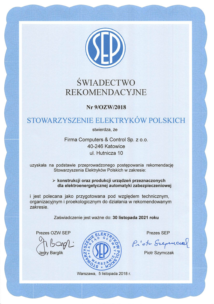 Firma Computers & Control Sp. z o.o. powstała w 1990 roku. Zajmuje się konstruowaniem oraz produkcją urządzeń przeznaczonych dla Elektroenergetyki.